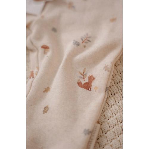 These delightful trousers in a sandy beige melange boasts the enchanting Forest Nature print with adorable little foxes surrounded by a forest filled with mushrooms and leaves.