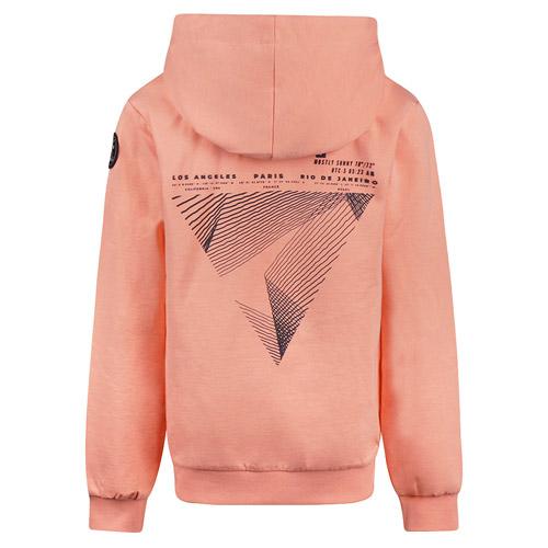 The No Way Monday hoodie in coral is a comfortable, eye catcher piece featuring a hood and a small text print on the front.