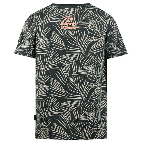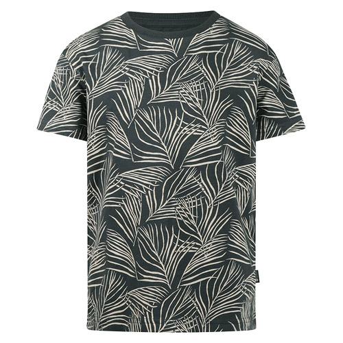 The No Way Monday t-shirt in charcoal gray with coral accents features an all-over leaf print that instantly evokes a summery vibe.