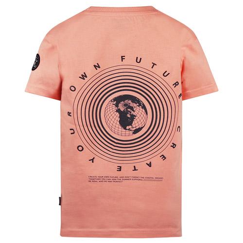 The No Way Monday t-shirt in coral is a real eye-catcher for sunny days, featuring a small print on the front and a large graphic print on the back.