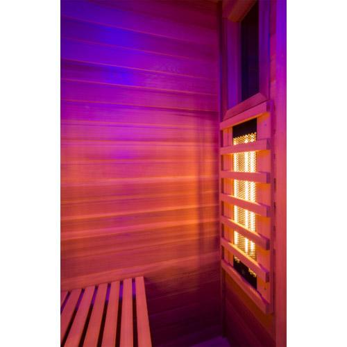 Combi infrared and sauna cabin promotes circulation as well as muscles and joints.