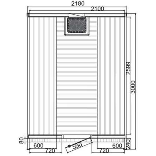 - Door in tinted, tempered glass 1770 mm x 590 mm x 8 mm.