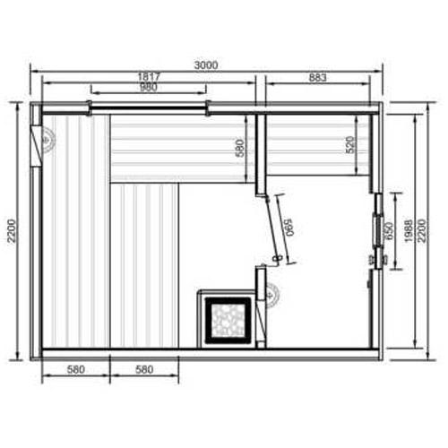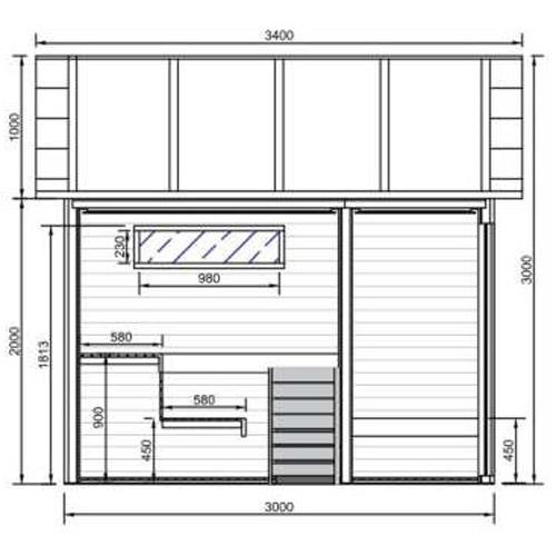 Outside sauna COMFORT 220 cm x 300 cm x 300 cm