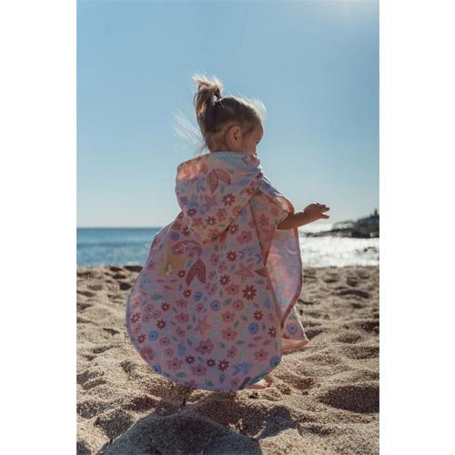 After a day full of sun, sea and splashing fun, the pink Dreamy Mermaid beach poncho is the perfect cozy way to end the day.