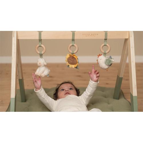 The baby gym develops hand coordination, improves motor skills and stimulates the senses every time your little one grabs one of the toys.