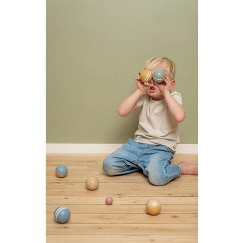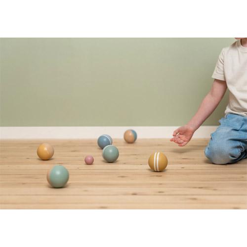 This set of wooden boules balls comes with 6 large balls, 2 small (jack) balls and a canvas bag to store the set in.