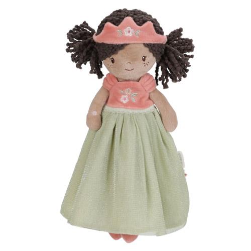 Meet princess Evi, a soft, 35 cm cuddly doll with beautiful dark curly hair.