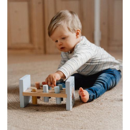 Utilisez le marteau pour enfoncer les 6 tiges colorées dans le banc à marteaux en bois et explorez la magie de Forest Friends.