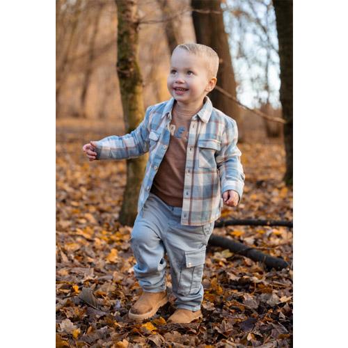 Ce joli pantalon bleu est confectionné dans un tissu jogging ultraconfortable, suffisamment extensible pour résister à toutes les aventures, qu'il s'agisse de sauts, de pas ou de rampements.