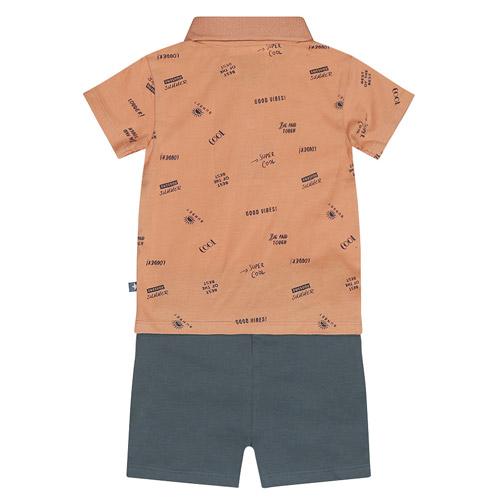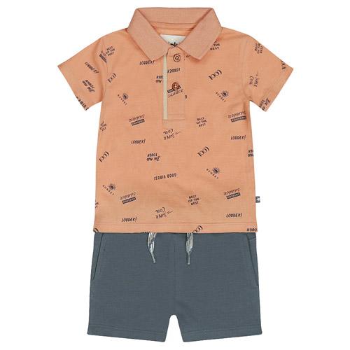 Pakje 2-delig Dirkje polo en short oranje/blauw