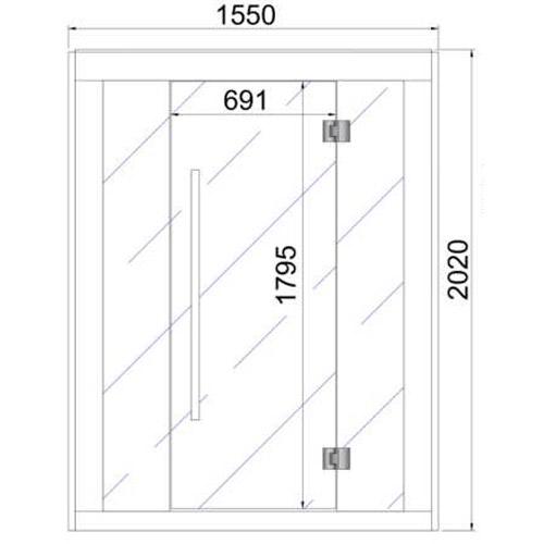 - Heldere veiligheidsglasfront met deur 1790 mm x 691 mm x 8 mm inclusief RVS hang- en sluitwerk.