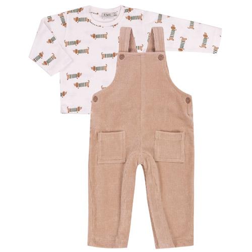 Babypakje EMC tuinpak ecru / t-shirt wit met hondjes