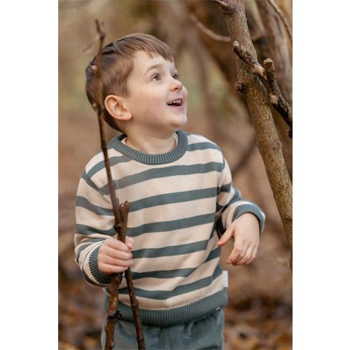 Trui Little Dutch Forest Friends gebreid groene strepen
