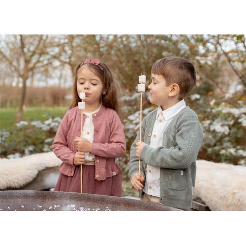 Laat je kleintje in stijl de deur uitgaan met dit warme, gebreide vestje in een prachtige bosgroene kleur.