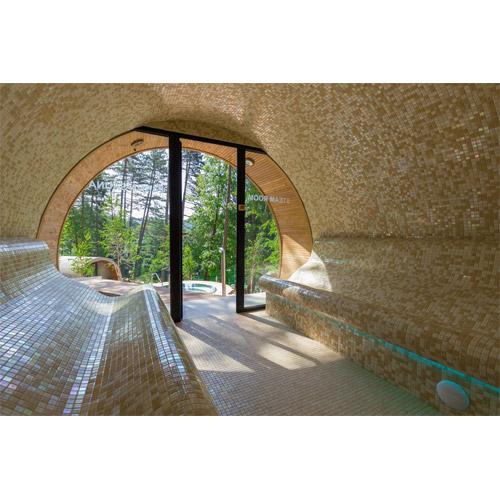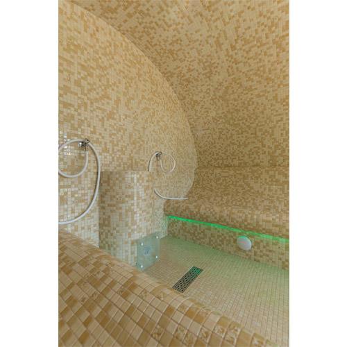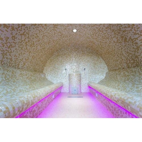 Wanden en plafond in hard schuim isolatie 90 mm betegeld met Ezzari mozaïek.