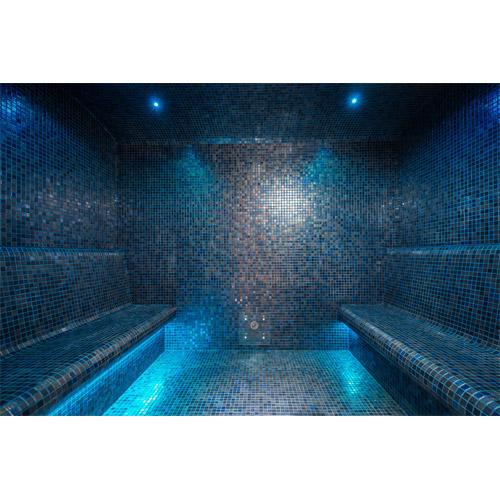 -LED RGB strips onder de banken en 2 LED spots diameter 40 in plafond.