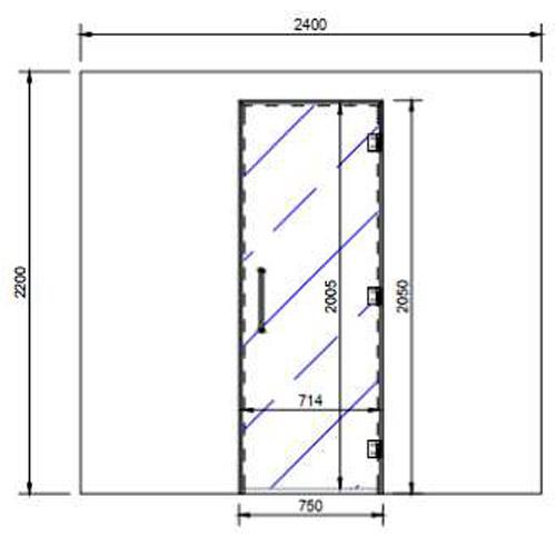Glasdeur 2005 x 714 mm in 8 mm gehard glas in aluminium frame met luxe scharnieren.