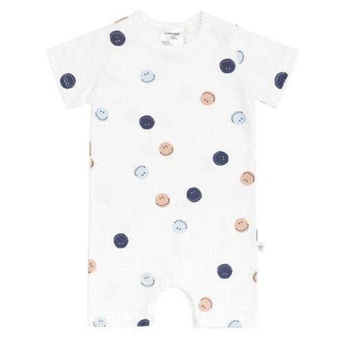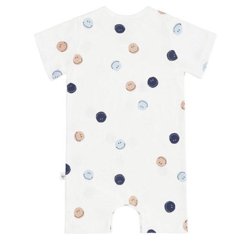 De hoogwaardige playsuit is huidvriendelijk. De delicate strikbandjes maken het aan en uit trekken gemakkelijk, Terwijl de praktische drukknoop het verschonen van luiers een fluitje van een vent maken.