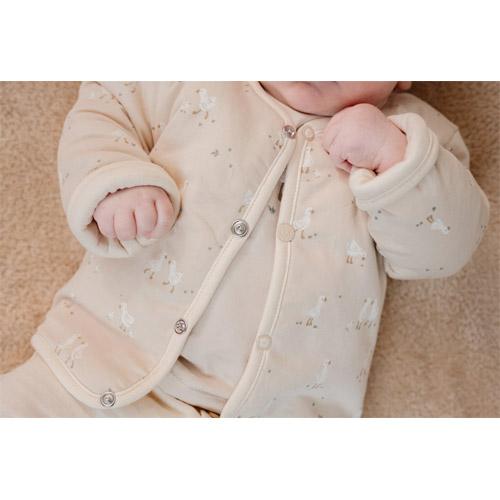 Een subtiele zandkleur met een charmant crinkle-effect aan de ene kant en de vrolijke Little Goose print aan de andere - zo kun je eindeloos mixen en matchen.