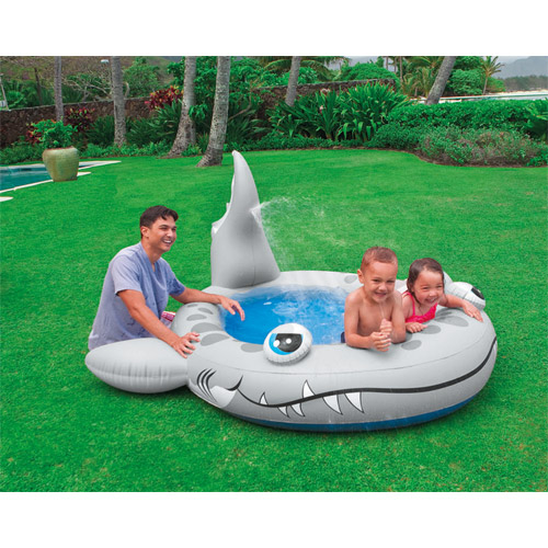 Super tof Intex kinderzwembad in de vorm van een haai die kinderen verrast met de keileuke fontein die uit de staart van de haai komt, plezier verzekerd.