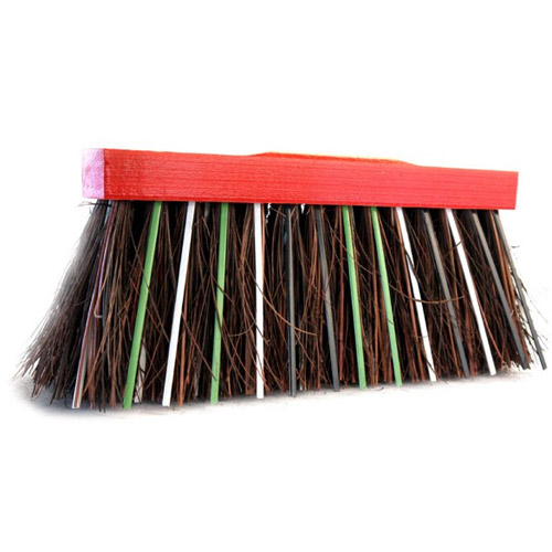 Voor het opvegen van bladeren zijn deze straatvegers prima toepasbaar, ze hebben lange harde borstelharen met een houten rood geverfde rug.