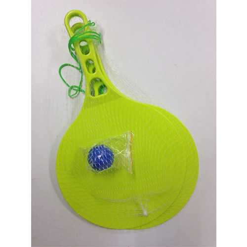 Dit strandspel bestaat uit 2 palletjes en 1 bal.