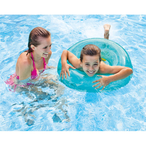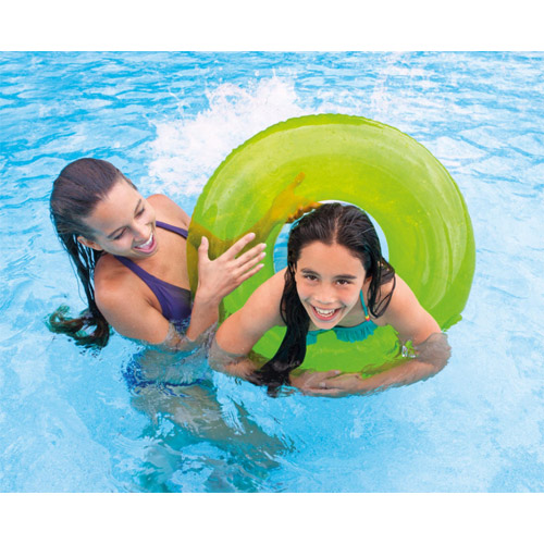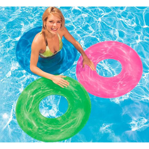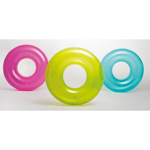 Zwemband ring, keuze uit drie verschillende doorzichtige kleuren.Buiten speelgoed voor kinderen van Intex.Afmeting: diameter 76 cm.Leeftijd: 8 jaar.
