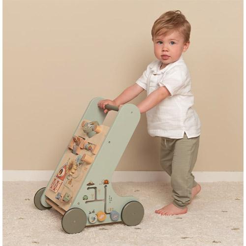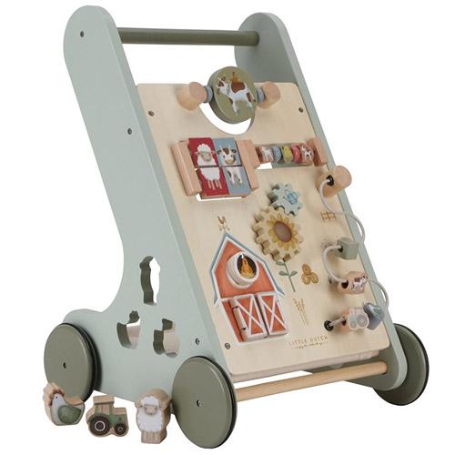 Deze houten activiteiten loopwagen biedt verschillende uitdagende activiteiten die de ontwikkeling van jou kindjes motoriek ondersteunen.
