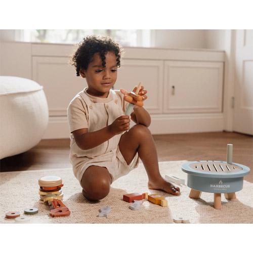Deze 34-delige houten barbecue speelset bevat BBQ-gereedschap, een hamburgerbroodje en een verwijderbare grill zodat het net echt lijkt en jouw kleintje het grillproces helemaal kan naspelen.