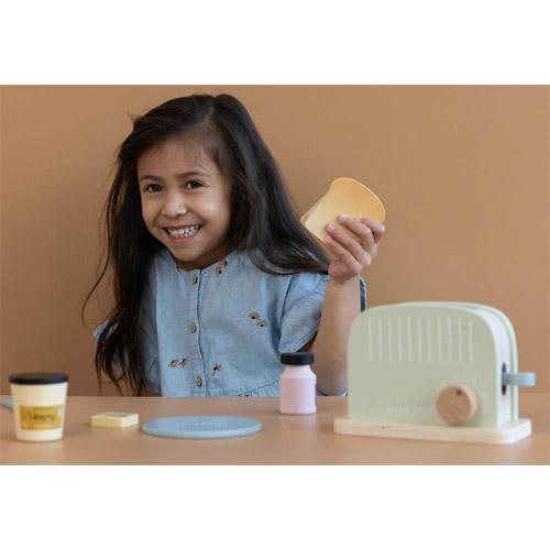 Deze broodrooster set stimuleert rollenspel en combineert mooi met het houten koffiezetapparaat.