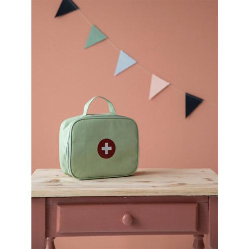 Alles zit erin wat je nodig hebt om de temperatuur op te nemen, de hartslag te controleren, bloeddruk op te meten en wonden af te dekken.
