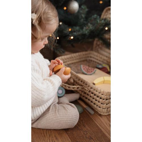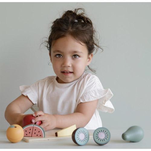 Je kindje zal het geweldig vinden om jou na te doen bij het maken van een fruithapje met dit houten snijfruit.