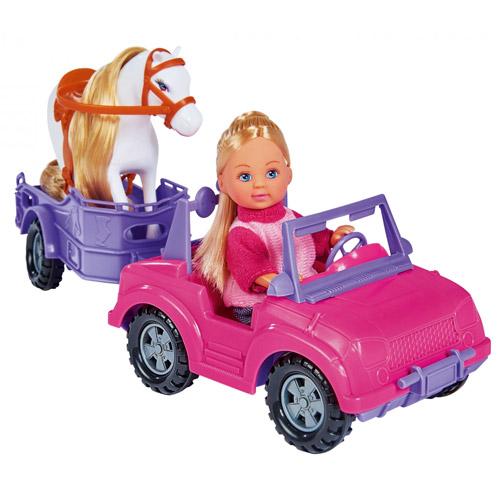 De roze jeep en bijpassende aanhangwagen passen perfect bij Evi's outfit.