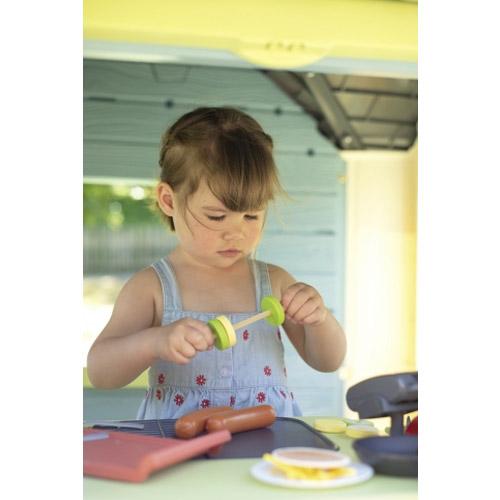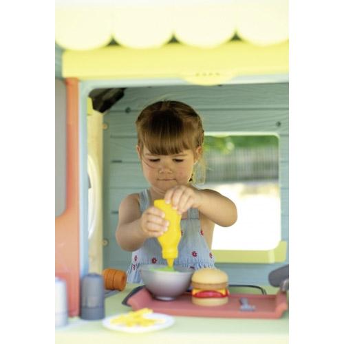 Dit huis waarin functies met betrekking tot koken en winkelen samenkomen, stelt uw kind en zijn vrienden in staat de bestellingen van hun klanten klaar te maken, te bedienen en het geld te innen als een echt openluchtrestaurant!