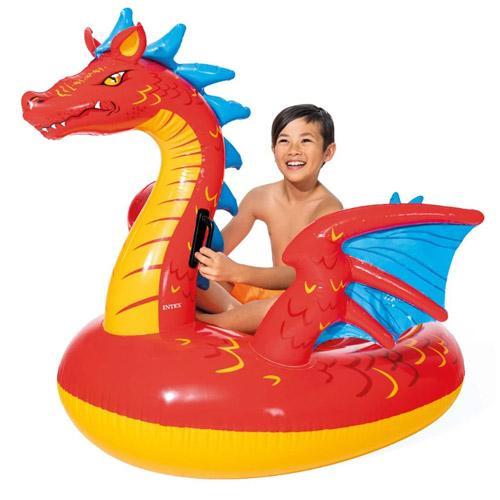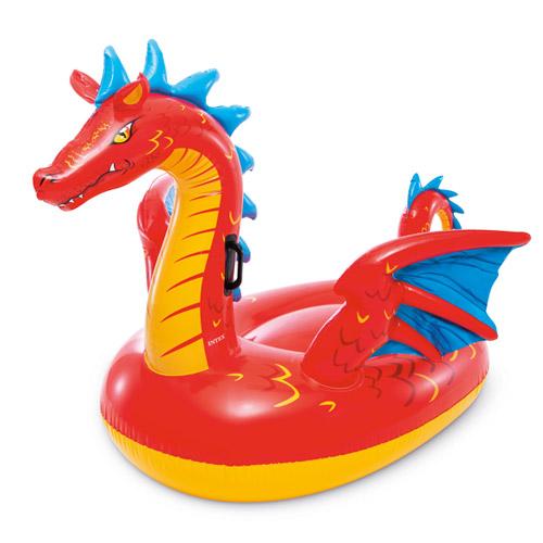Laat uw zelf stralen aan of in het zwembad met dit mooie draak zitje ride-on van Intex.