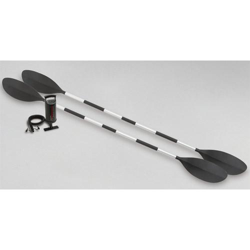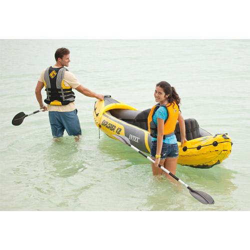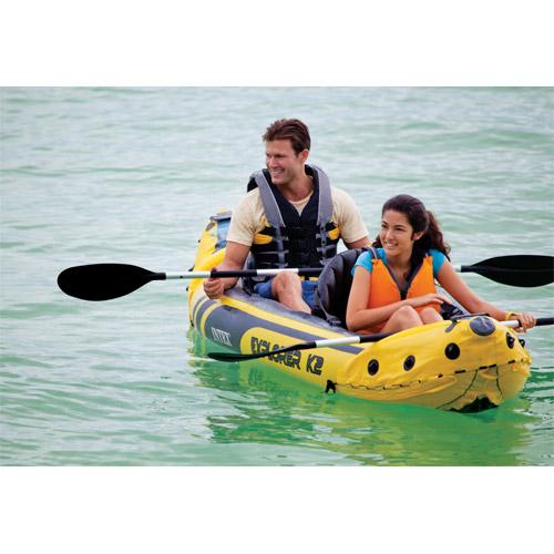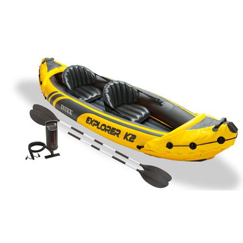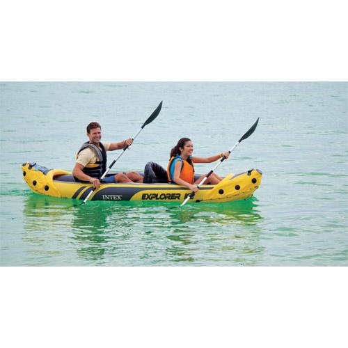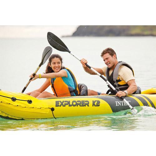 Explorer K2 is de ideale roeiboot voor rafting op zee of rivier, de boat heeft een grijs-gele kleur met een rubber bescherm rand, twee opblaasbare zitbanken, roeispanen en high-output opblaaspomp inbegrepen.