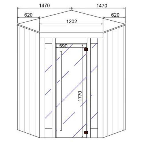 - Getinte veiligheidsglasfront met deur 1770 x 590 x 8 mm inclusief bruine scharnieren / red ceder handvat en 2 zijruiten in 8 mm gehard glas.