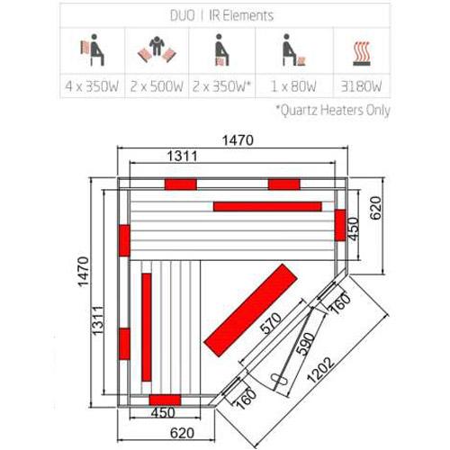 - Bank, ergonomische rugleuningen en vloer in Canadees red ceder hout, kunstlederen hoofdsteunen.