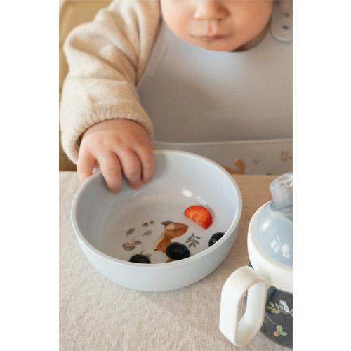 Het Mpeal Mio kinderschaaltje met de lieve Forest Friends print van Little Dutch is er voor elk eetmoment.